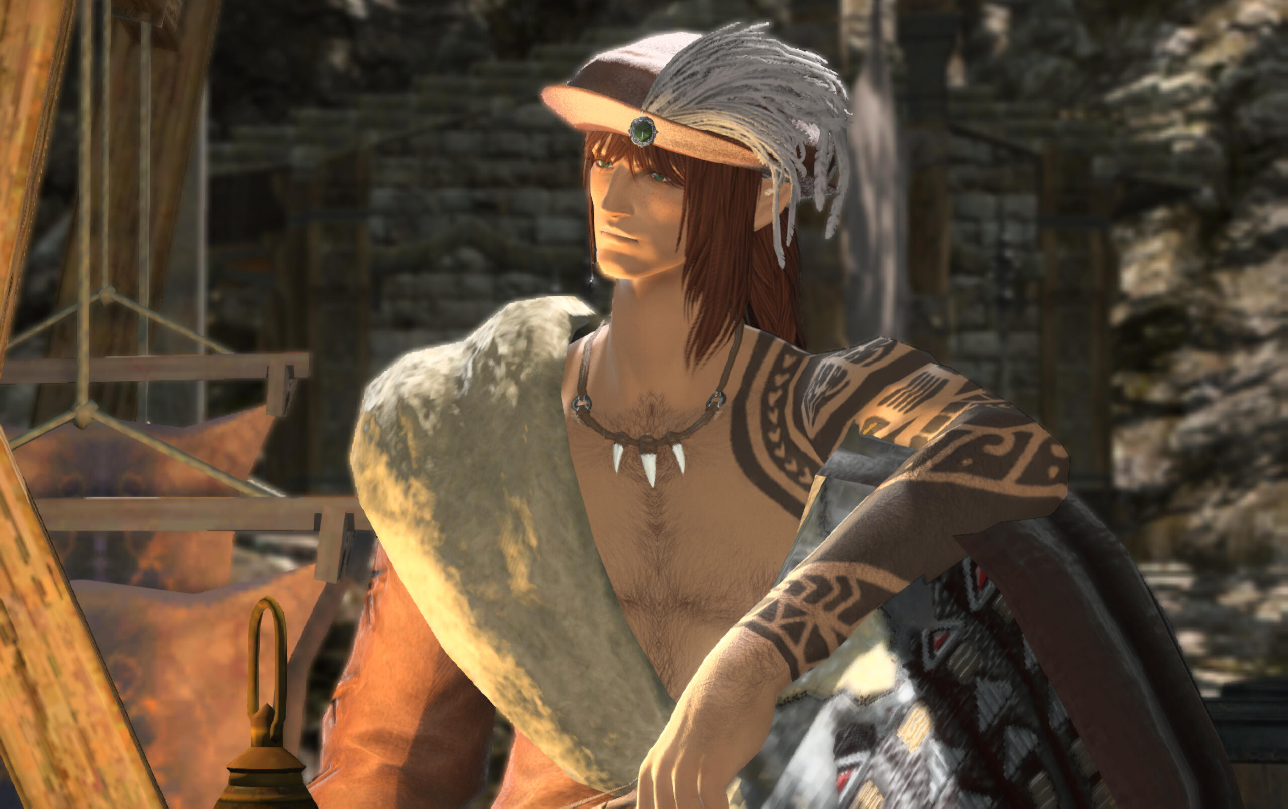 To the north, in the Dravanian forelands, you will find the settlement of Tailfeather. If you are merely passing through, you’ll receive little regard and mayhap a comment or two. However, suppose you are seeking to employ a sturdy, surly sort as a tracker or wood courier or are looking to obtain a chocobo steed. In that case, you will arouse a seemingly sleepy settlement into a frenzy of savvy and shifty businessmen. However, a charismatic amber-eyed boy with ebon hair and reddish bronze skin managed to spirit me away from the crowd and introduce me to one of the wood couriers and expert trappers of his clan, Yvain Martel.Master Yvain made his initial impression by taming a wild chocobo when introduced. A stern, straightforward sort, he was rightfully protective of his people and their trade. However, he was kind enough to divulge the ways of his clan, allowing me a glimpse of their day-to-day lives and cherished customs. Not born a Martel but adopted, he explained that even those native to Dravania must prove themselves worthy of the name. This makes a number of the clans, including the Martels, remain diverse as a people. Trials that tested each member’s strength, skill, and quick wit are issued when an individual is ready, with each triumph inked into their arms as a badge of honor and pride. These practices vary between the families and factions, of course.“Different clans have different initiation rites,” Yvain explained, “but for Martel, you must lead your first bear hunt, brave the white water rapids of the Whilom in a cedar canoe, and of course, break in your first Chocobo. After every trial, you earn an additional component of your tattoo, and once you have the full sleeve, you earn the name 'Martel.'"
